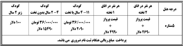 ⦁ درصورت عدم صدور روادید از طرف سفارت مربوطه 10% مبلغ ریالی تور کسر و مابقی مسترد میگردد.